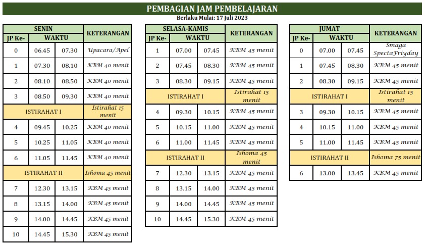 Kelas berlaku mulai hari SENIN, 17 Juli 2023